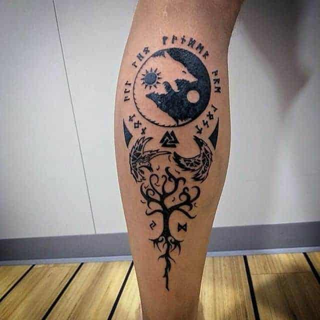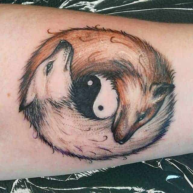 Цікавий варіант розгляду подвійності устрою світу. Тату, на якому зображено два вовка: чорний і білий. Це один з найоригінальніших і незвичайних втілень Інь Ян.