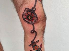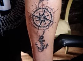 - Компас з якорем в парі. Значення тату компас – вірність своїм принципам. У поєднанні вони означають рух до наміченої мети.