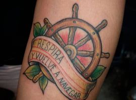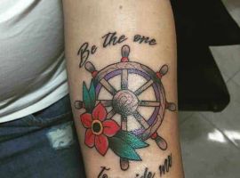 Символ штурвала означає, що людина, яка вирішила його набити, є господарем свого життя і нікому не дозволить вказувати, як їй чинити в тій чи іншій ситуації. Таку ідею набивають лідери.
