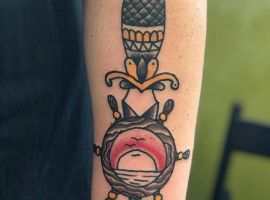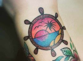 Особливо популярні композиції на всю спину, які вказують на лідерські якості і здатність тримати все під контролем. Таке тату на руці набивають люди, відкриті до діалогу і оптимісти. Особливо підходять для штурвала на руці – передпліччя і зап’ясті.