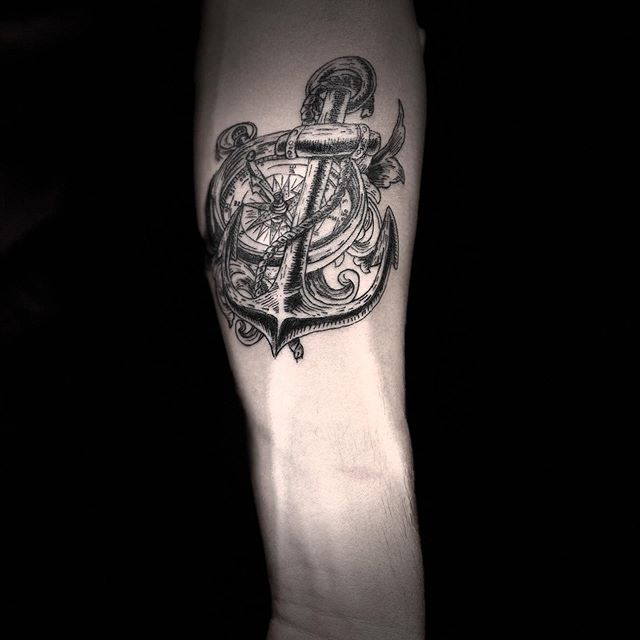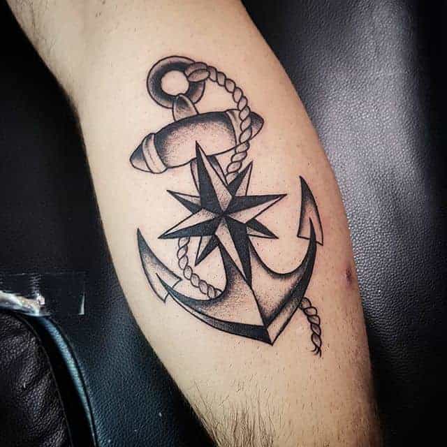 - Компас з якорем в парі. Значення тату компас – вірність своїм принципам. У поєднанні вони означають рух до наміченої мети.
