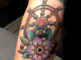 Особливо популярні композиції на всю спину, які вказують на лідерські якості і здатність тримати все під контролем. Таке тату на руці набивають люди, відкриті до діалогу і оптимісти. Особливо підходять для штурвала на руці – передпліччя і зап’ясті.
