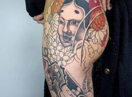 Таке тату підійде чоловікам і жінкам. Вибирають цей стиль ті, хто цікавиться японською культурою, поважає традиції, вірить в глибокий символізм зображень. Чоловіки частіше роблять масштабні тату, на всю ногу. А дівчата зазвичай вибирають татуювання на стегні.