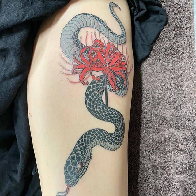 - Змія – оберіг, що захищає від зла і невдач. За давньою японською легендою змії мають надздібності. Тому таке тату може принести удачу, процвітання. Може також символізувати мудрість, зцілення, відродження.