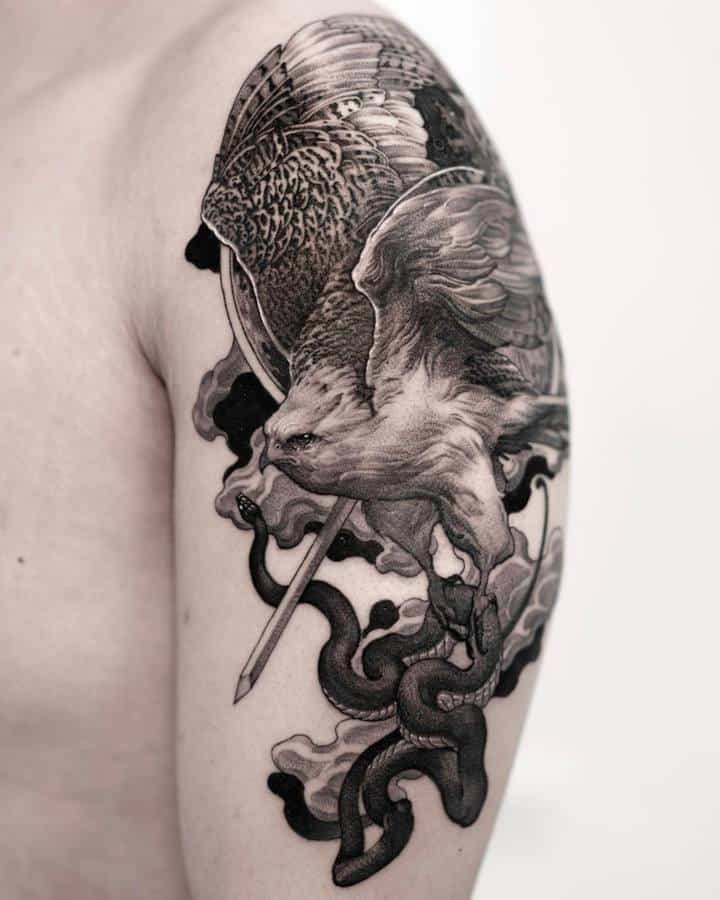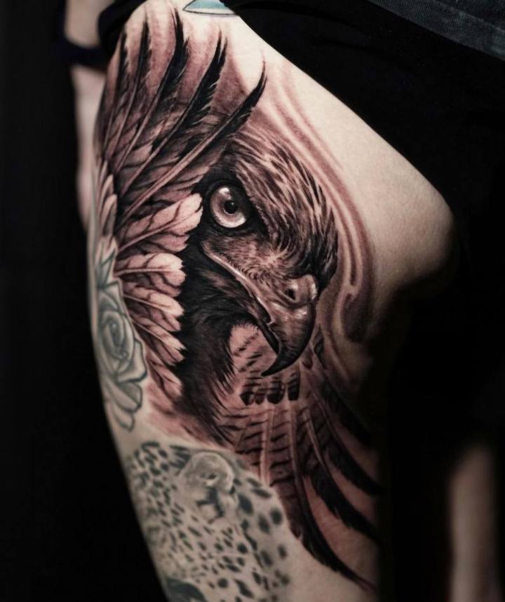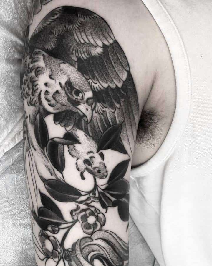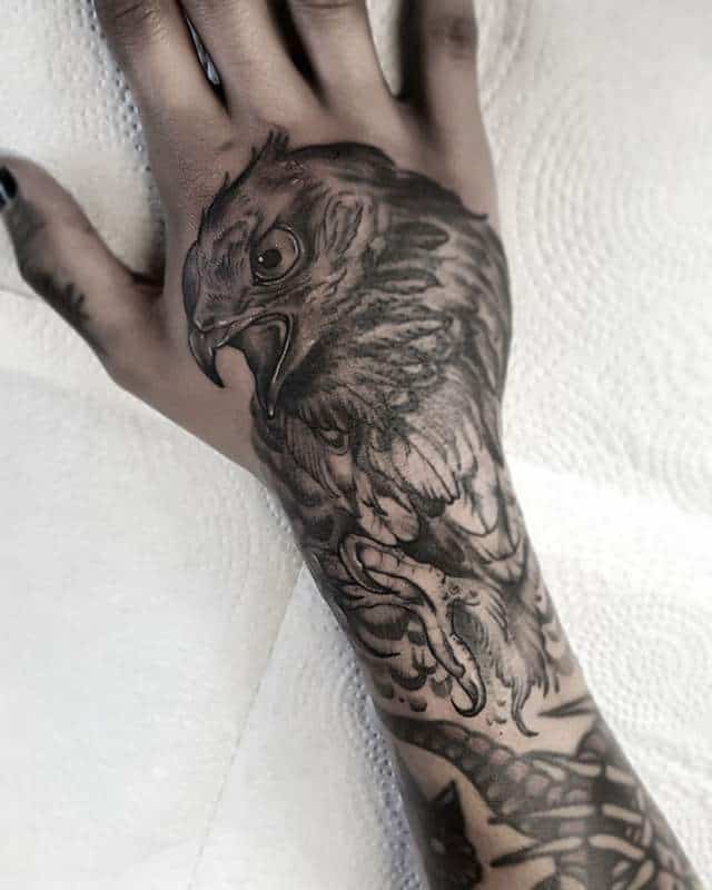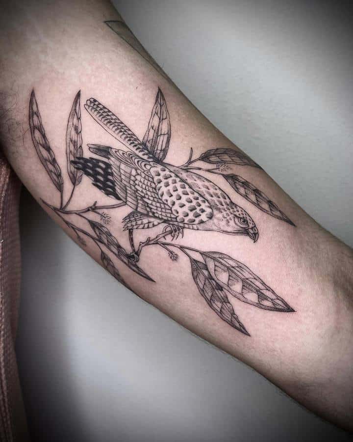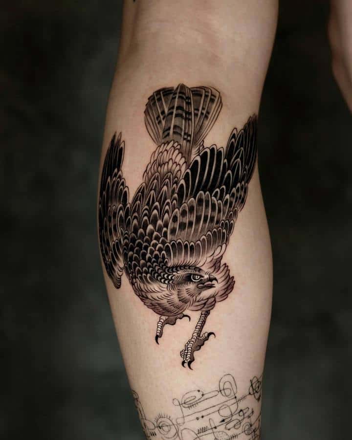 - Тату з яструбом відображає увагу до дрібниць, з яких складається унікальне бачення світу.