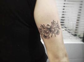 Метелики – дуже популярний ескіз тату для дівчат. Вони символізують мрію, прагнення стати краще. Малюнок на тілі може говорити про серйозну роботу своєї власниці над собою як зовні, так і внутрішньо.