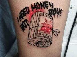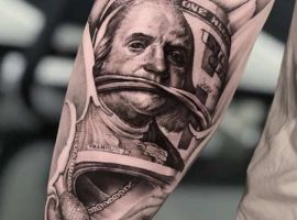 Це ідеальний варіант для людей, які прагнуть продемонструвати свою фінансову незалежність, поповнити свої заощадження. Основна ідея подібних тату з банкнотами – притягувати до себе гроші. Зображення має стати для людини символом успіху і благополуччя, приносити достаток, оберігати від поганих поглядів і розорення. Важливо пам’ятати, що оберіг буде діяти, тільки якщо в нього вірить сам господар татуювання.