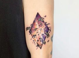 Як відомо, тату наносять для різних цілей: наділяють їх функціями оберега, захистом від пристріту, негативного впливу, роблять їх талісманами, які повинні приманювати удачу. За допомогою татуювання, яке поєднує в собі гроші, карти і зброю, цінителі натільних малюнків можуть поєднати всі перераховані вище якості, придбати позитивні риси, змінити свій світогляд.