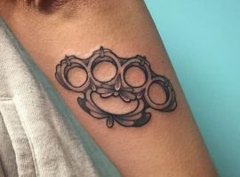 Звичайно, кастет-це зброя не для війни або бойових мистецтв, а для вуличних бійок. Тому таке татуювання часто вибирають в пам’ять про бурхливу молодість, з бійками і різними дебошами.