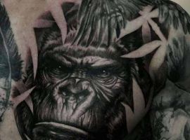 Звичайно, в татуюваннях горилу зображують у великому обсязі і найчастіше – в стилі реалізм, адже так вона виглядає максимально ефектно. Для такого варіанту вибирають великі ділянки шкіри: спину, груди, плече і тп..