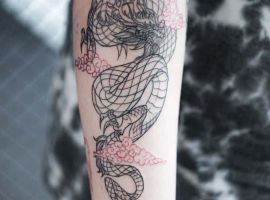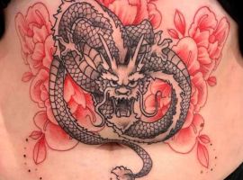 - Квіти. Найчастіше майстри наносять зображення дракона в поєднанні з квітами. Крім вдалого красивого поєднання, власник набуває можливості трохи згладити агресивний настрій зображення, зробивши його більш м’яким і гармонійним. Адже квіти справедливо вважаються символом м’якості, ніжності.
