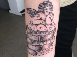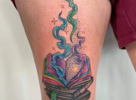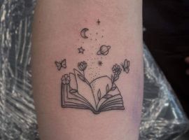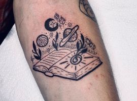 Татуювання із зображенням книги означає досягнення мудрості і прагнення до нових знань.