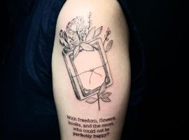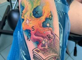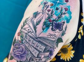 Сьогодні популярні татуювання із зображенням книг-бестселерів. Перед нанесенням важливо визначитися з колірним рішенням, стилем, в якому буде виконаний малюнок, а також розміром і місцем розташування. Ескізи для татуювання із зображенням книги можна вибрати на просторах Інтернету, або створити індивідуальний, вклавши в нього свій сенс. Наші майстри салону Альянс в Києві малюють унікальні проекти тату на замовлення.
