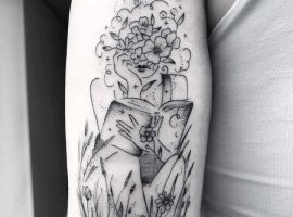 Тату із зображенням книги набивають творчі натури, які не визнають ніяких стереотипів і вважають за краще яскраве життя. Для таких дівчат дане тату є своєрідним талісманом, який допомагає отримувати натхнення.