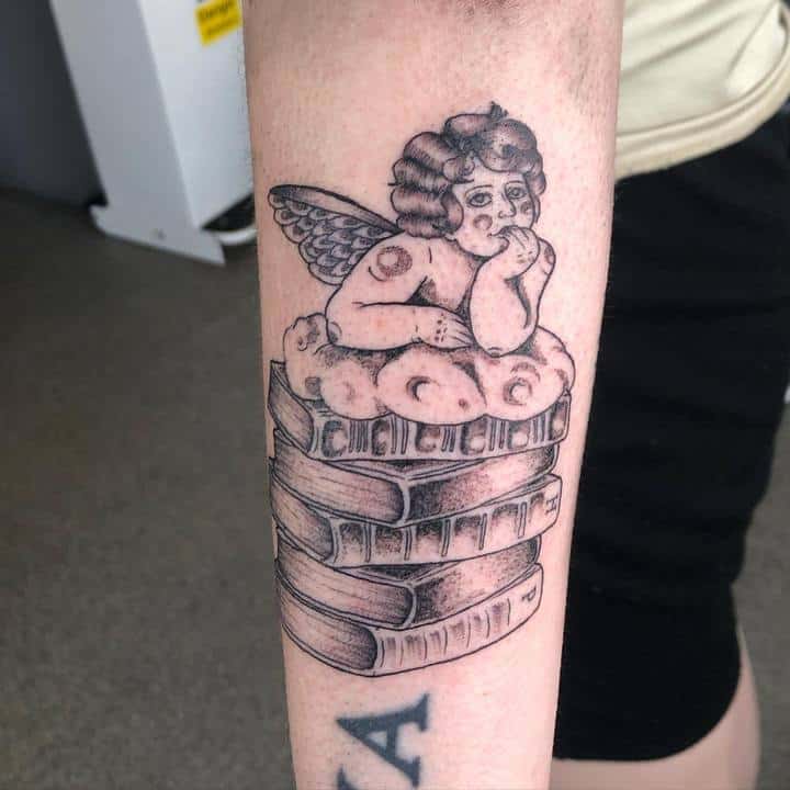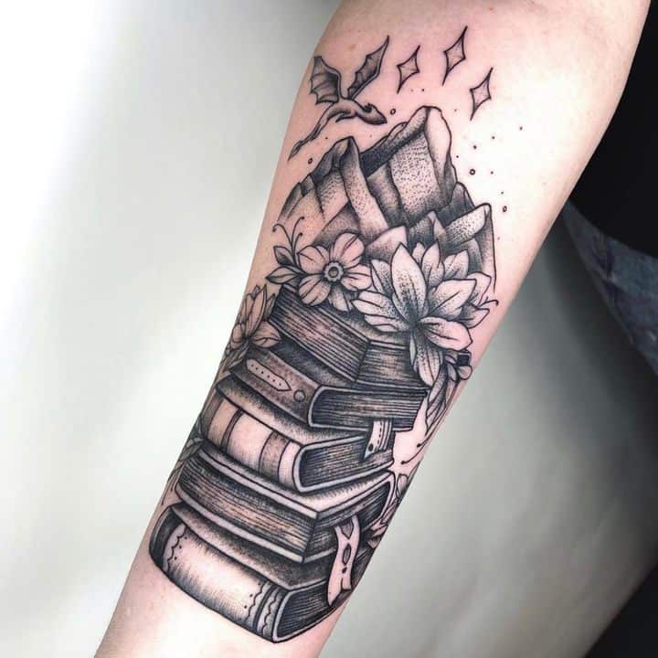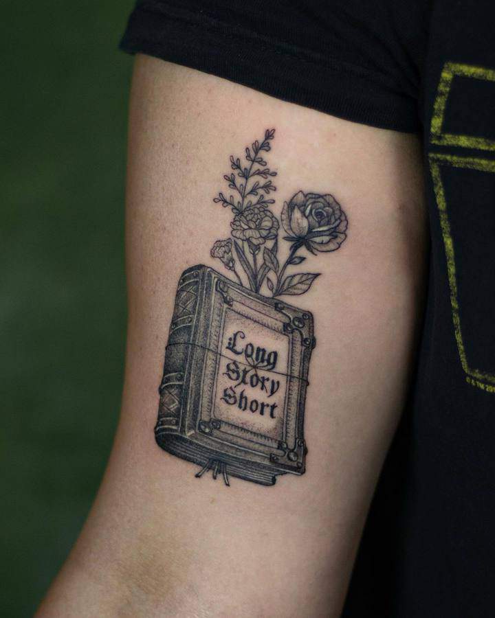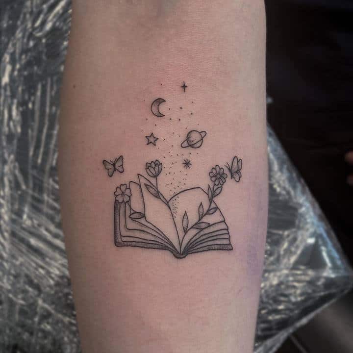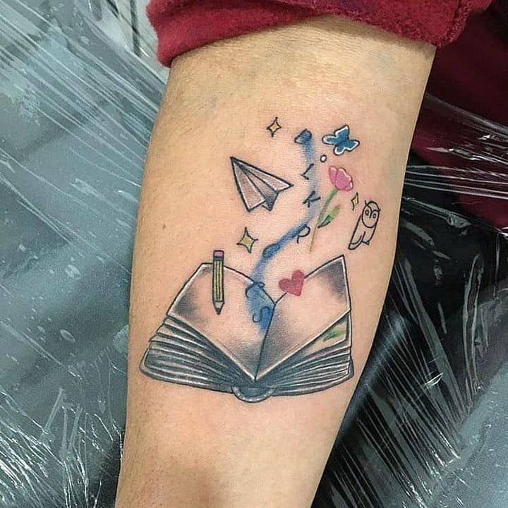 Татуювання із зображенням книги означає досягнення мудрості і прагнення до нових знань.