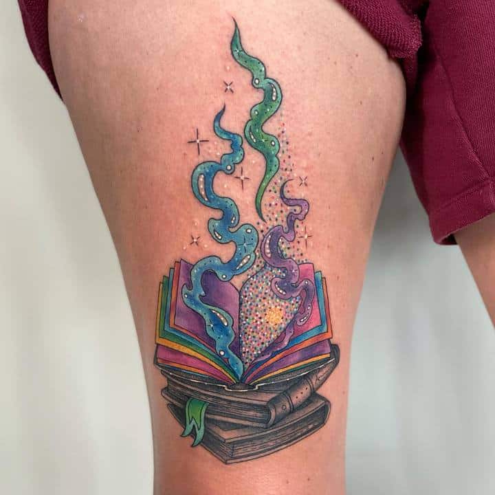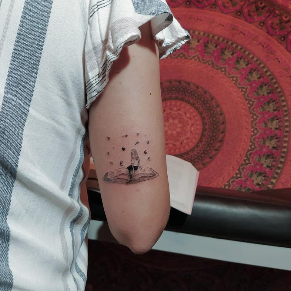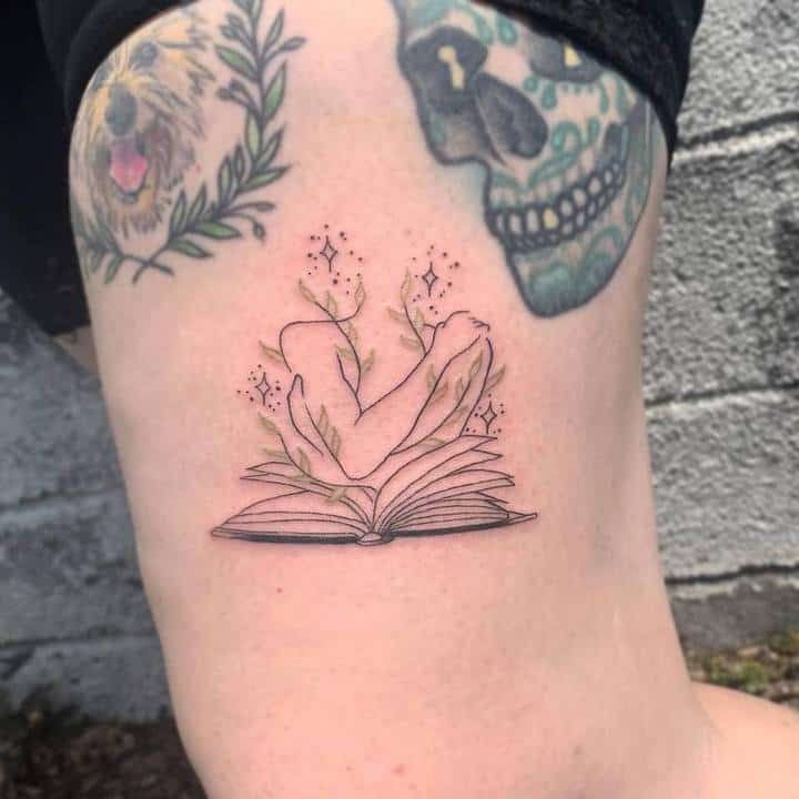 Тату із зображенням книги набивають творчі натури, які не визнають ніяких стереотипів і вважають за краще яскраве життя. Для таких дівчат дане тату є своєрідним талісманом, який допомагає отримувати натхнення.