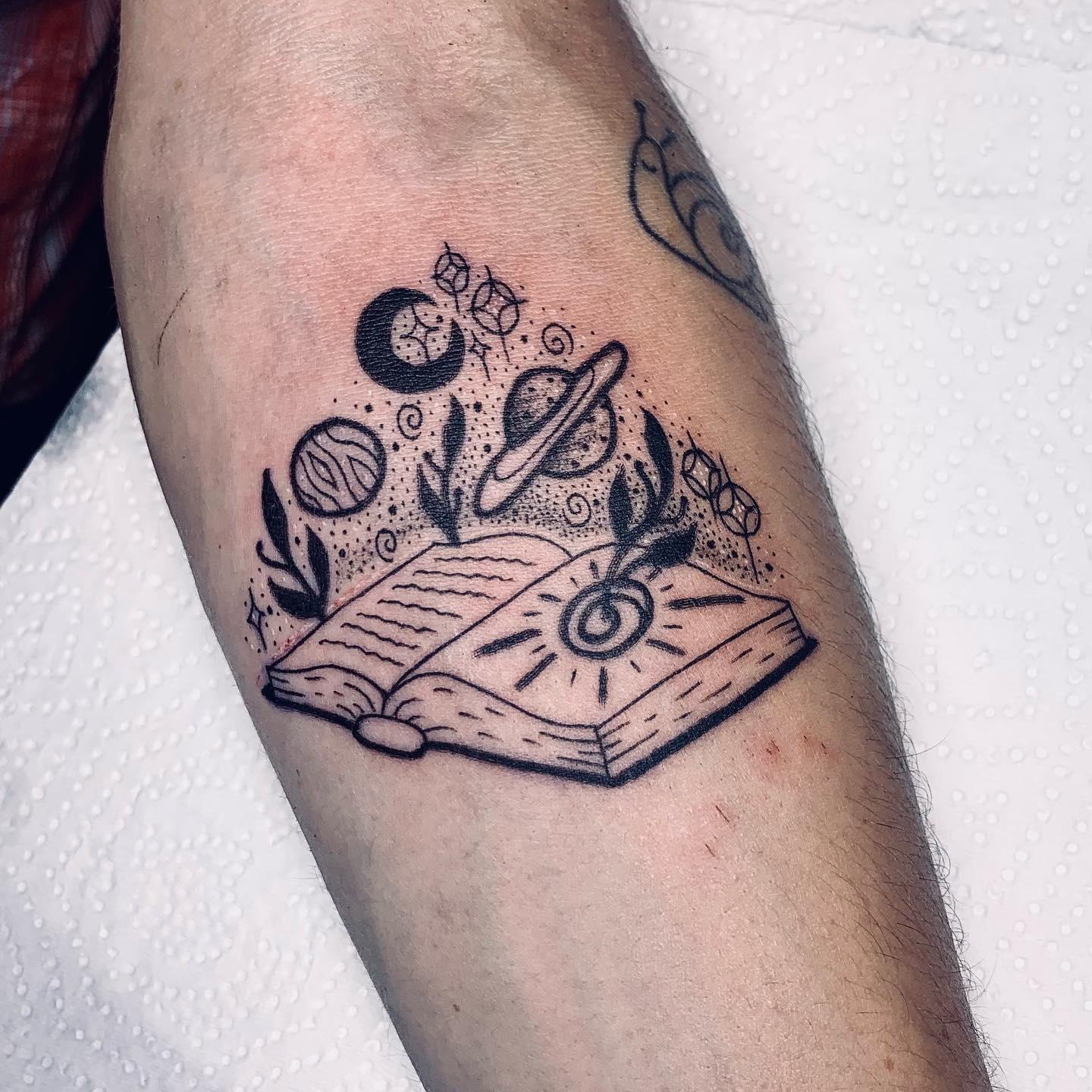 Область розміщення зображення книги залежить від ескізу і масштабу татуювання: