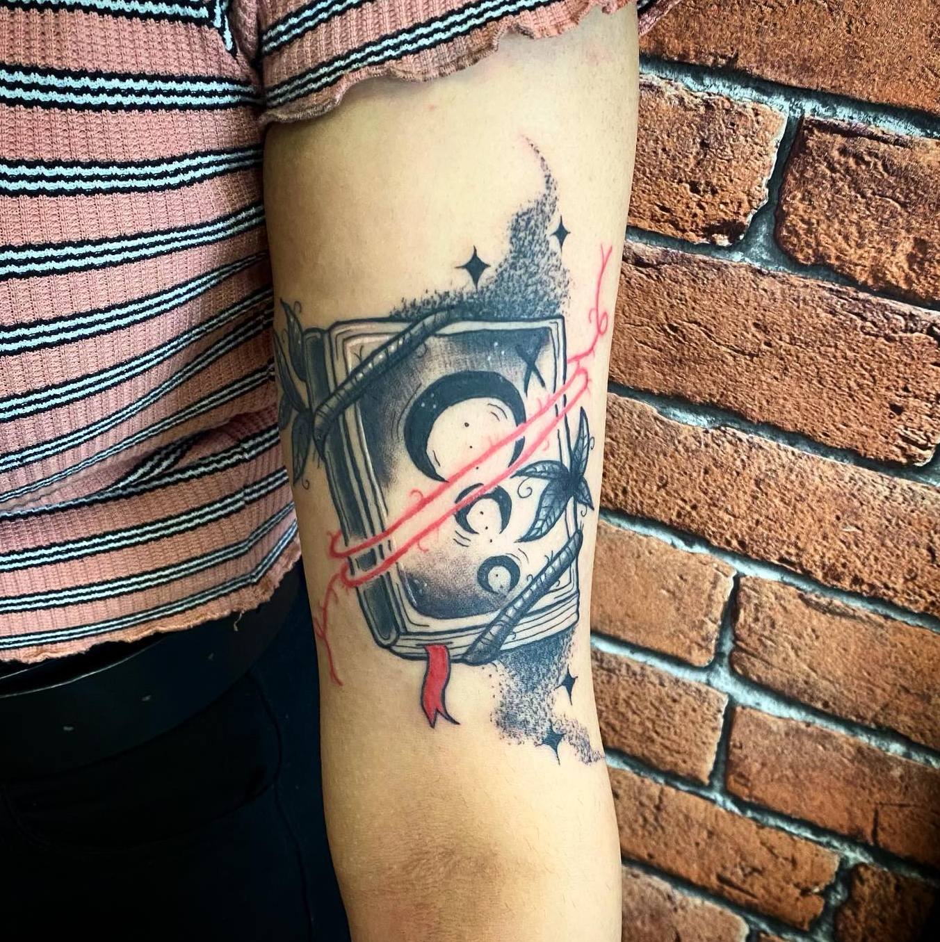 Сьогодні популярні татуювання із зображенням книг-бестселерів. Перед нанесенням важливо визначитися з колірним рішенням, стилем, в якому буде виконаний малюнок, а також розміром і місцем розташування. Ескізи для татуювання із зображенням книги можна вибрати на просторах Інтернету, або створити індивідуальний, вклавши в нього свій сенс. Наші майстри салону Альянс в Києві малюють унікальні проекти тату на замовлення.