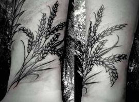 Є ще одне значення такого татуювання. Пшениця викликає асоціації з батьківщиною, тому такий малюнок на шкіру можуть наносити патріоти, або люди, які живуть далеко від рідної землі і сумують за нею. А от якщо в малюнку зображено кілька колосків, обмотаних однією ниткою або мотузкою, то такий малюнок означає спільність, єднання якоїсь групи людей, друзів або сім’ї. Загалом, можна сказати, що колосок пшениці – образ позитивний, сімейний і благополучний. Замовте ескіз а салоні Альянс у Києві.