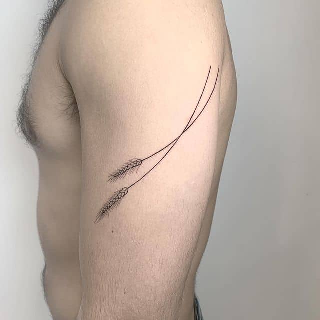 Є ще одне значення такого татуювання. Пшениця викликає асоціації з батьківщиною, тому такий малюнок на шкіру можуть наносити патріоти, або люди, які живуть далеко від рідної землі і сумують за нею. А от якщо в малюнку зображено кілька колосків, обмотаних однією ниткою або мотузкою, то такий малюнок означає спільність, єднання якоїсь групи людей, друзів або сім’ї. Загалом, можна сказати, що колосок пшениці – образ позитивний, сімейний і благополучний. Замовте ескіз а салоні Альянс у Києві.