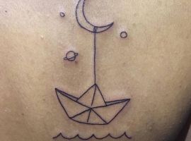 Символ човна, корабля, мабуть, можна назвати одним з найстаріших. Справа в тому, що вся морська тематика характерна для стилю олд скул, а це, як відомо, один з найстаріших стилів татуювання. І, дійсно, побачити наколки у вигляді корабля або човна, нехай навіть і дуже незграбно виконані, можна було на тілах у маси моряків або піратів. Але зараз, звичайно, значення кораблика дещо змінилося. Багато людей асоціюють цей символ саме з літературою, поетикою. Є в цьому символі щось мрійливе і загадкове. Паперовий кораблик опускають у воду, і він пливе всього лише кілька секунд, а потім гине під товщею води. Що це, як не метафора для всього людського життя?