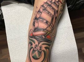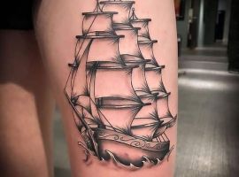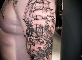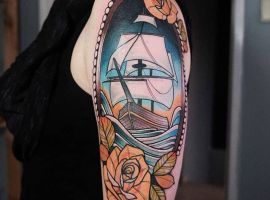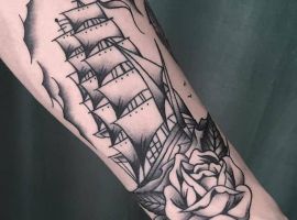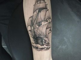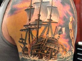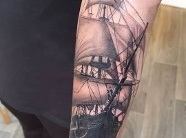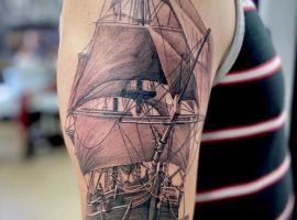 Тату з кораблем виглядають неординарно і завжди виділяють з натовпу їхнього власника. Якщо раніше такий малюнок вибирали люди, тісно пов’язані з морем, наприклад, моряки, пірати, матроси, то тепер татуювання корабель доступне і людям абсолютно різних професій. Зрозуміло, що зміст у цього зображення буде змінюватися, воно стає не тільки уособленням інтересів, роботи людини, а й її душевних переживань. Але в будь-якому випадку незалежно від того, яку татуювання ви підберете наші майстри тату салону Альянс виконають ідеальний ескіз відповідно до ваших побажань.