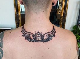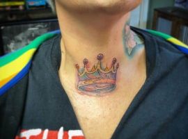 - Тату корона на шиї;
