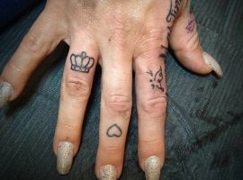 - Тату корона на стороні кисті.