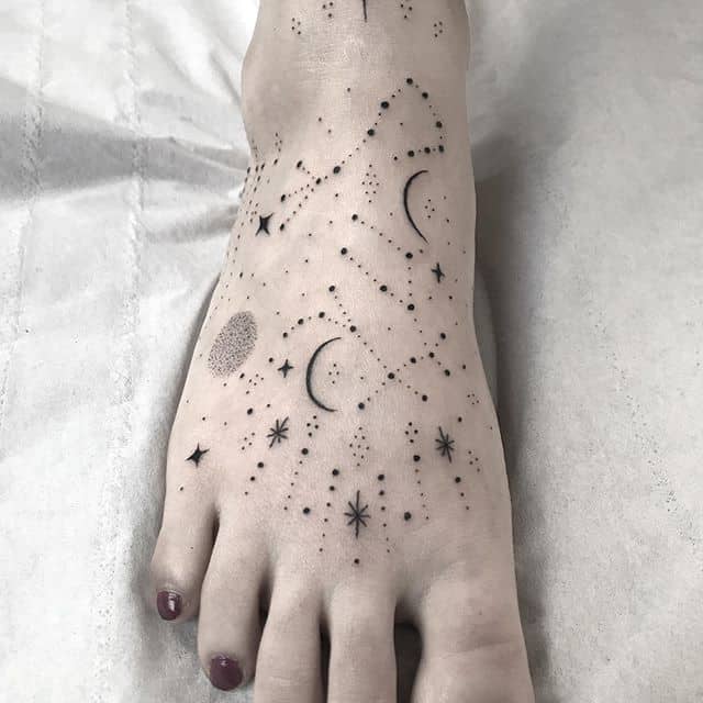 Якщо бажання робити велику композицію відсутнє, можна вибирати символічні образи. Наприклад, часто люди роблять татуювання з розташуванням небесних тіл, яке було на небі під час якої-небудь значущої для них події. В цьому випадку можна зобразити у вигляді точок, з’єднаних тонкими лініями, як на астрологічній натальній карті.