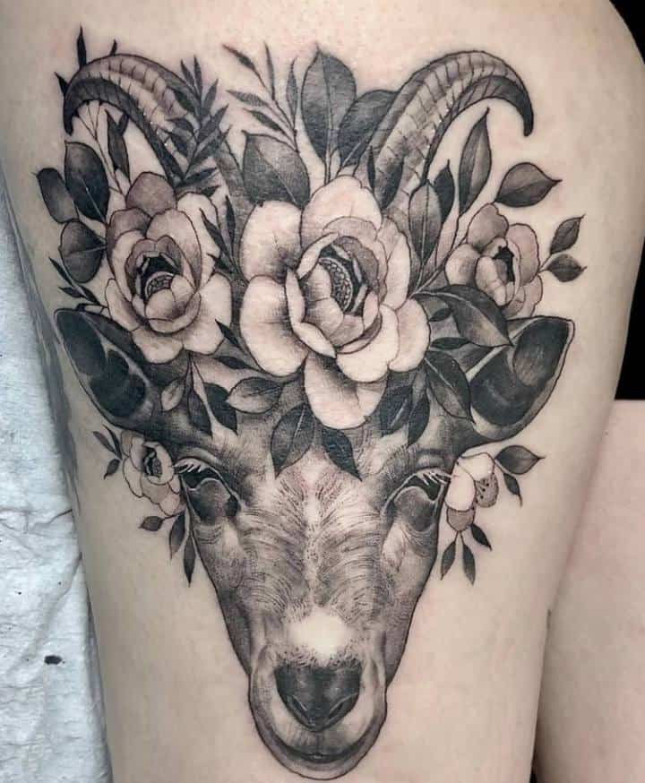 Тварин на шкіру наносять дуже часто. Кожна людина, в тій чи іншій мірі, асоціює себе з певним звіром, порівнюючи свій характер з його рисами поведінки. Найчастіше вибирають левів і тигрів, вовків і ведмедів, котів і собак. А ось деяких тварин вибирають дуже рідко. Наприклад, такі тваринки, як козел – не у всіх викликають приємні асоціації, а багато хто і зовсім не знає значення його символізму.