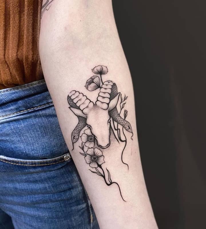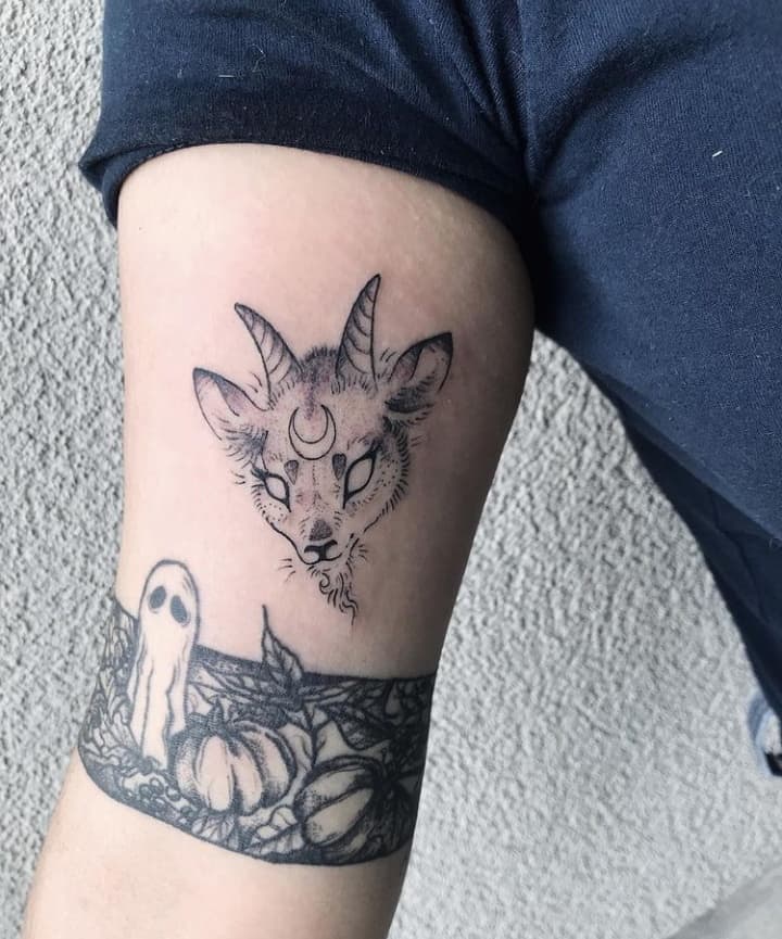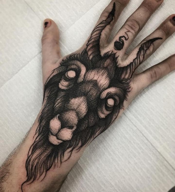 Не секрет, що образ цапа або тільки цапиного черепа використовується сатаністами. У цьому сенсі його теж вибирають в якості ідеї для тату. В такому випадку виглядає тварина страхітливо, і часто доповнюється перевернутою пентаграмою і іншими, характерними атрибутами. Але такий малюнок зовсім не обов’язково наносять на шкіру саме представники даної субкультури. Він може бути символом протесту проти стандартних підвалин суспільства і загальноприйнятих правил.