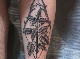 Така, здавалося б, буденна рослина як кропива має дуже впізнавану форму листочків, через що її можна зображати на шкірі в різних варіантах і стилях. При цьому, складно собі уявити, який же символізм може бути у цієї рослини.