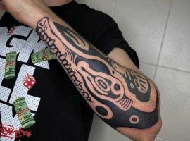 З трепетом і шануванням, як царя животворящих вод, сприймали крокодила єгипетські селяни. Його зображення було дуже шанованим в Єгипті кілька тисячоліть! Крокодил також являє собою приховану небезпеку, яку так само можна розглядати як трактування татуювання з символом крокодила, алігатора або каймана. Замовте унікальний ескіз у салоні Альянс у Києві.