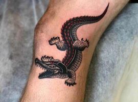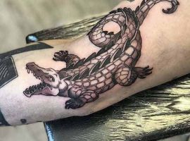 Зображення крокодила чи алігатора , як символ татуювання, може являти собою шлях проти течії, свободу від рамок і обмежень, у тому випадку, якщо його паща на малюнку розкрита. Ці небезпечні плазуни здатні проковтнути все що завгодно, і в цьому сенсі татуювання крокодил являють собою силу боротьби в життя.