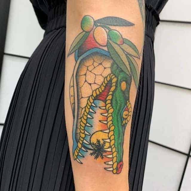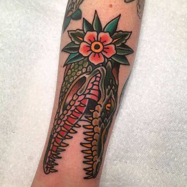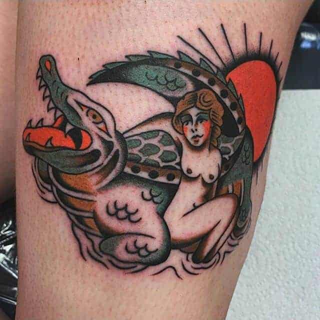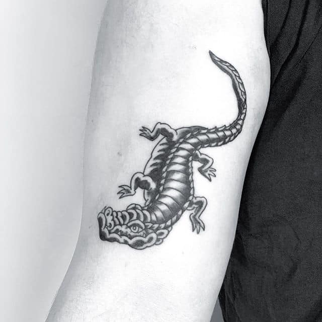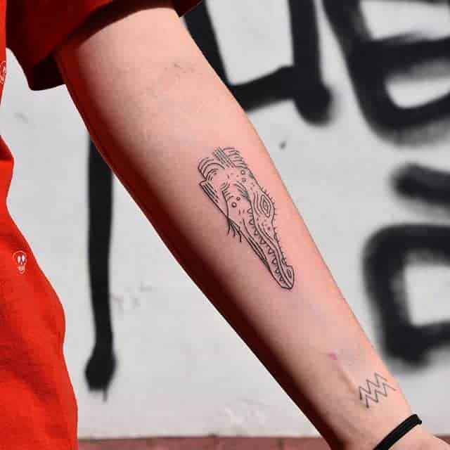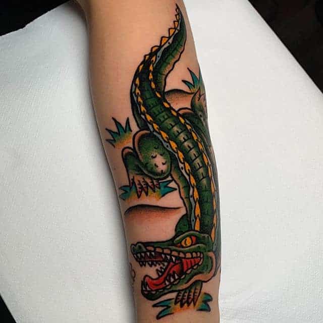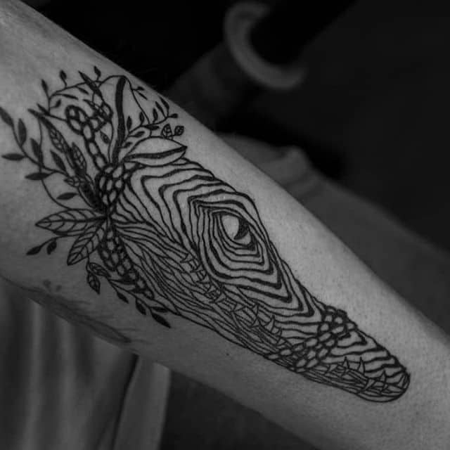 Зображення крокодила чи алігатора , як символ татуювання, може являти собою шлях проти течії, свободу від рамок і обмежень, у тому випадку, якщо його паща на малюнку розкрита. Ці небезпечні плазуни здатні проковтнути все що завгодно, і в цьому сенсі татуювання крокодил являють собою силу боротьби в життя.