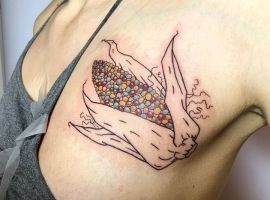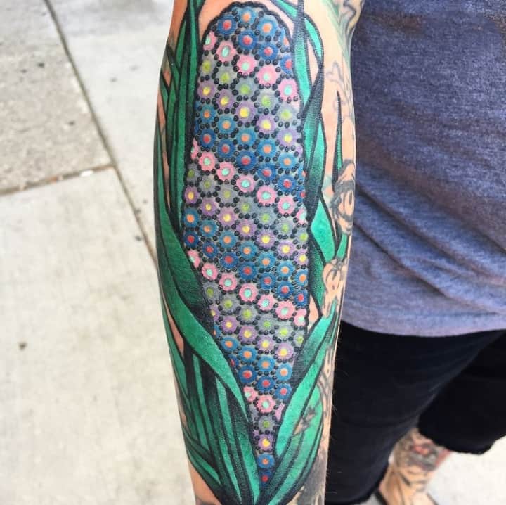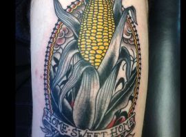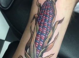 Ця зернова культура одна з найпоширеніших по всьому світу. Люди її шанують і вирощують, так як це зручно і з неї можна готувати багато страв і додавати в різні вироби. Однак, складно уявити, що може підштовхнути людину нанести на шкіру перманентне зображення у вигляді кукурудзи.