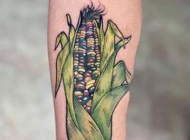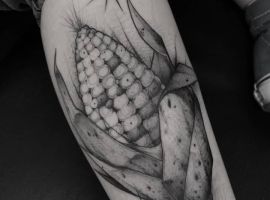Татуювання у вигляді кукурудзи дуже універсальне, його можна виконати в абсолютно будь-якому стилі: в реалізмі, в графіці, в мультяшному вигляді; в абсолютно будь-якому розмірі: від мініатюри на зап’ясті, до об’ємної картини на всю спину. Найголовніше-знайти досвідченого тату-майстра в Києві і підібрати вдалий ескіз.