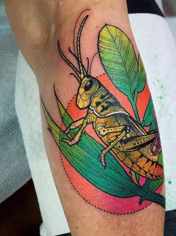 Одним словом, значення татуювання коник – дуже позитивне, на нього також впливає символіка зеленого кольору, який уособлює гармонію, спокій і любов.