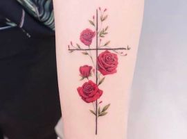 Іноді латинський хрест виступає не самодостатньою композицією, а доповненням малюнка. Комбінуватися він може з крилами ангела, трояндами, короною, чотками і іншими елементами.