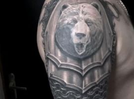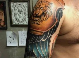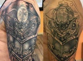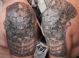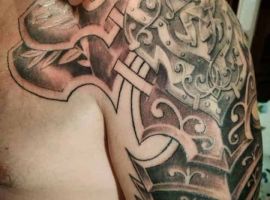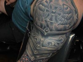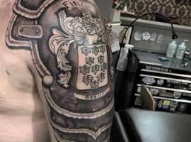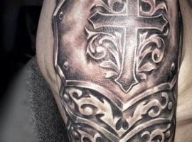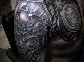 - Популярне місце для тату обладунки на плечі. Для чоловіка вони символізують внутрішню силу, твердий характер і впевненість.