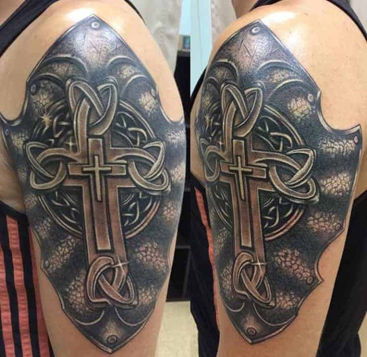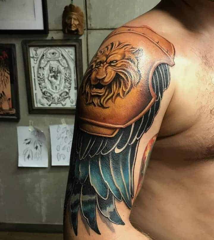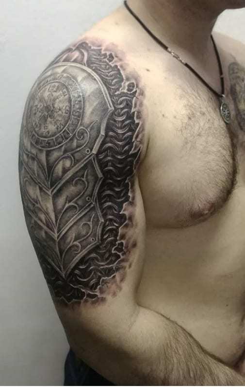 - Популярне місце для тату обладунки на плечі. Для чоловіка вони символізують внутрішню силу, твердий характер і впевненість.