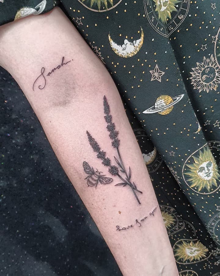 Лаванда – квітка дуже мила і витончена, тому в якості ідеї для тату її частіше вибирають дівчата. А романтичний вигляд наштовхує на роздуми про закоханість. Таким чином, символічно тату буде залучати в життя свого власника почуття і романтику.