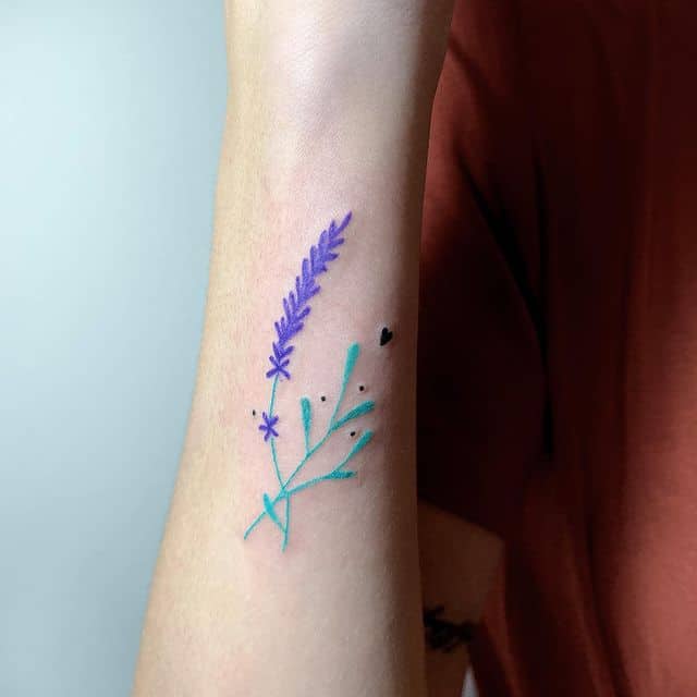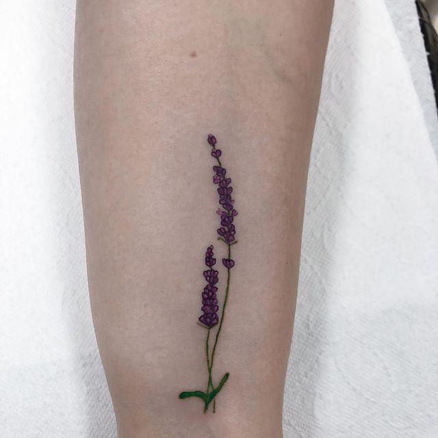 Найчастіше, татуювання з лавандою роблять в кольорі, адже саме лавандовий колір і робить цю квітку максимально впізнаваною. Якщо тату роблять дівчата, то зазвичай малюнок роблять маленьким і наносять на жіночні частини тіла: передпліччя, ключиця, гомілку, ребра або лопатку. Також можна додати інші польові квіти, створивши красиву композицію. Виглядати буде красиво і яскраво. Особливо витончено виглядають мініатюри. Для такої філігранної роботи потрібен досвідчений майстер, як у салоні Альянс у Києві.