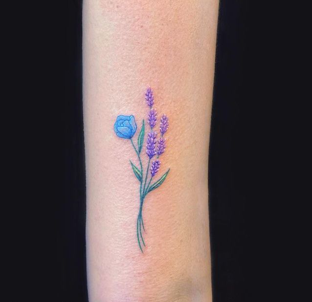 - Блакитний позначає безтурботність. Володарі татуювання у вигляді лаванди, в якому переважає даний відтінок, цінують свою свободу. Вони відкриті і готові до чогось нового.