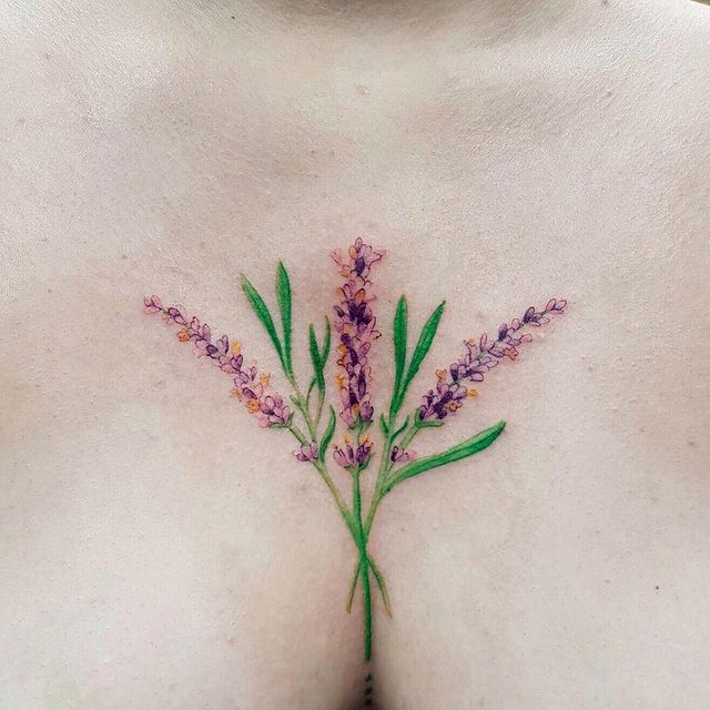 Лаванда – красива, ніжна польова квіточка з приємним ароматом, на честь якої навіть назвали колір – лавандовий. Вона дуже естетично і пізнавано виглядає, а тому багато людей вибирають саме її в якості ідеї для натільної прикраси – татуювання.