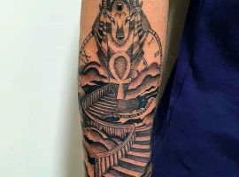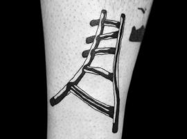 Татуювання сходи – це символ багатозначний. Він вказує на підйом до нових вершин або спуск вниз, на зв’язок верху і низу, на зв’язок між духовним і матеріальним … Але найчастіше сходи наносять саме з метою показати рух вгору.
