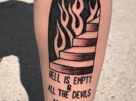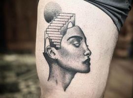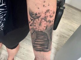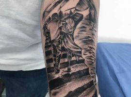 Татуювання сходи (сходинки) привертають до себе увагу, адже вигладять вони досить незвично. Практично у кожної людини виникає асоціація зі сходами, пов’язана з рухом. Але вгору або вниз буде цей рух не завжди зрозуміло. Сходи метафорично може означати прагнення домогтися висот, стати значимою людиною. Але іноді це і регрес, повернення до старого «я». Трактування цього древнього символу досить складне і часто залежить від манери виконання татуювання та стилю виконання. Але незалежно від того, з яких причин ви хочете зробити татуювання зі сходами, майстри тату салону Альянс готові прийняти вас.