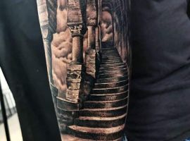 Наші майстри салону Альянс в Києві готові виконати для вас будь-яку татуювання зі сходами по індивідуальному ескізу. Подивіться приклади робіт в «Портфоліо» майстрів і звертайтеся!
