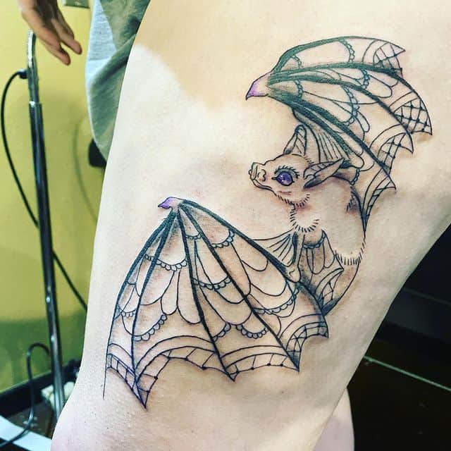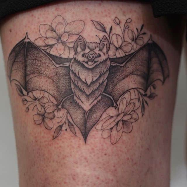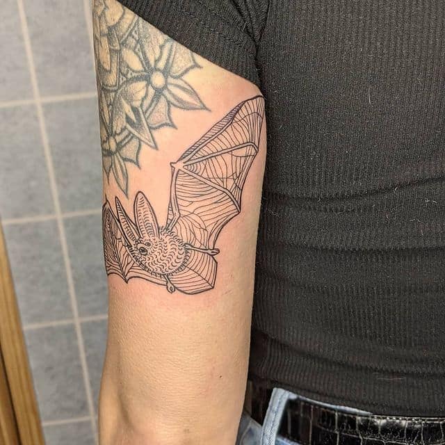Татуювання кажан на тілі – це багатозначний символ. Таке зображення може говорити як про агресивність, так і про таємничость. А, можливо, що це і знак чоловіка, який служив у розвідці. Найчастіше цей літаючий ссавець зображують на темному тлі близько місяця. Але можуть бути і інші, більш неординарні варіанти. У будь-якому випадку майстри тату салону Альянс виконають для вас ідеальний ескіз, а потім і саму татуювання.