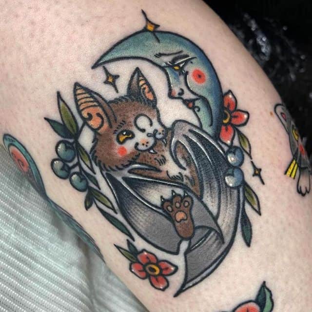 Основними значеннями татуювання кажан на тілі можна назвати пильність і проникливість. Пояснити це досить просто. Істота переміщається тільки вночі, в світлий час доби вона спить.